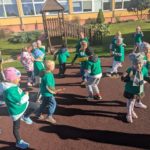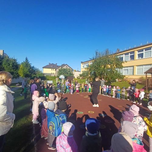 Mažieji sportininkai kartu su mokytojomis, tėveliais atliko smagią mankštą, o vėliau su dideliu džiaugsmu bėgo simbolinius ratus darželio kieme. Bėgdami vaikai mokėsi, kad solidarumas reiškia būti kartu, palaikyti draugą ir dalintis gerumu.