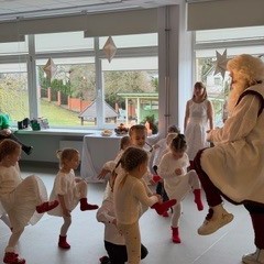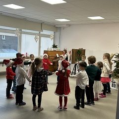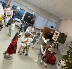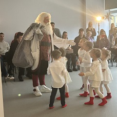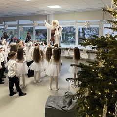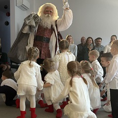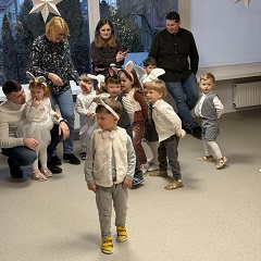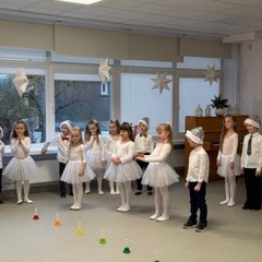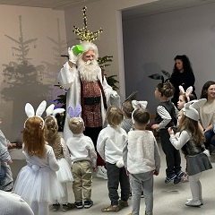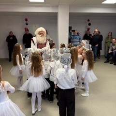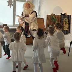 Prieš pat šventes mūsų darželio vaikučius aplankė Baltas kalėdų senelis. Ir didžiosios Kalėdų šventės pas mus prasidėjo didžiuliu vaikų džiaugsmu, krykštavimu, žaidimais….