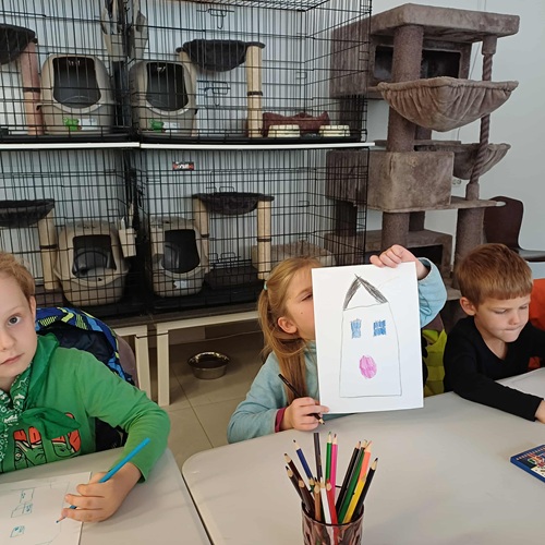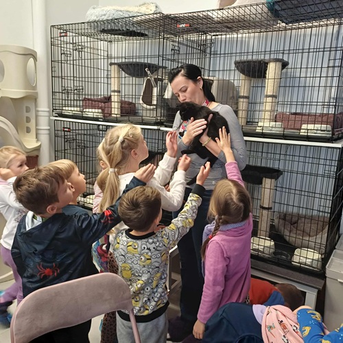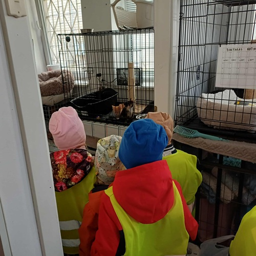 Minėdami pasaulinę gyvūnų dieną, spalio 9 d. ,,Ežiukų“ grupės vaikai vyko į gyvūnų globos namus VŠĮ ,,Rožinė pėdutė“. Ne visi gyvūnai gali pasidžiaugti šiltais namais ir mylinčiais šeimininkais. Aplink mus yra daug beglobių gyvūnų, kurie tapo nereikalingi žmogui. Bet mes galim pasidžiaugti, kad yra tokių įstaigų, kurios pasirūpina beglobiais gyvūnais. VŠĮ ,,Rožinė pėdutė“ darbuotojos maloniai priėmė ir pakvietė vaikus apžiūrėt patalpas, kuriuose gyvena kačiukai. Taip pat kiekvienas vaikas gavo po kūrybinę užduotį, nupiešti katinui svajonių namą, kurią, mūsų vaikai puikiai atliko. Palikus dovanas kačiukams, atsisveikindami padėkojome įstaigos darbuotojoms už jų meilę gyvūnams ir prižadėjome kitais metais vėl juos aplankyti. Dėkojame darbuotojoms už dovanėles visiems vaikučiams. Nuoširdžiai dėkojame VŠĮ ,,Rožinė pėdutė“ darbuotojų ir savo grupės vaikučių vardu ,,Ežiukų“ grupės tėveliams už surinktą paramą beglobiams gyvūnams.