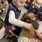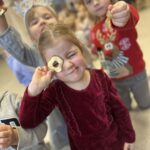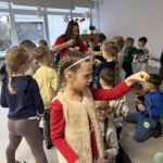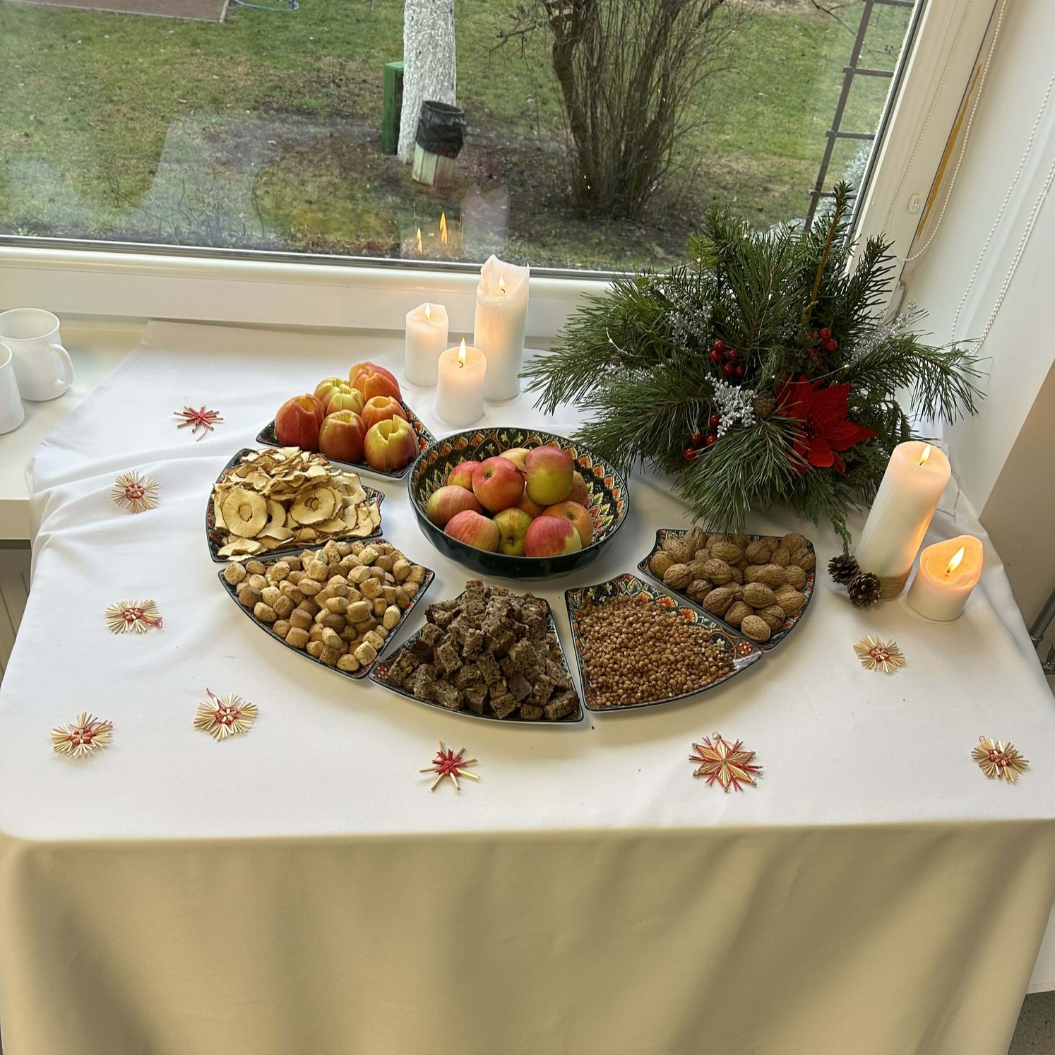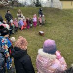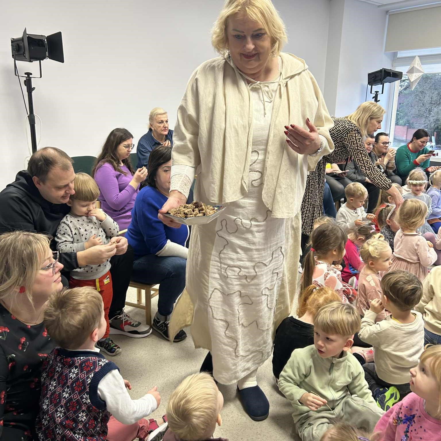 Pačių gražiausių žiemos švenčių išvakarėse mūsų darželio bendruomenė susirinko kartu pasibūti, prisiminti kūčių tradicijas – pasidalinti vieni su kitais pagrindiniais kūčių patiekalais (kūčiukais, džiovintais obuoliukais, riešutais, duonele, kviečiais ir net spanguolių kisieliumi), išsiburti (kas panorėjo) sau gerus ateinančius metus su šiaudais, vientisai nulupta obuolio žievele, ar sužinoti, traukiant daiktus iš po lėkštelių, kokie metai laukia – darbingi, turtingi, ar su naujomis pažintimis… O kai mokytoja Rita į salę atnešė „bluką“, visi labai nustebome. Išaiškėjo, kad pagal senovinę tradiciją „bluką“ reikia sudeginti, nes jis simbolizuoja per visus metus sukauptą blogį ir pyktį. Sumetė ir mūsų vaikučiai savo blogas emocijas į bendrą krepšį ir kartu su „bluku“ sudegino laužo liepsnose…Kartu pabuvę, visi ramiai galime laukti artėjančių švenčių ir palinkėti vieni kitiems gražių Kalėdų…