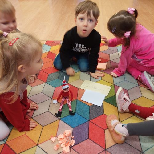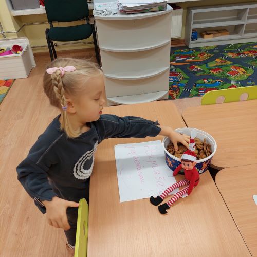 Trečiąją gruodžio savaitę vaikus aplankė išdykėlis elfas, kuris kasdien krėtė linksmus pokštus ir kvietė vaikus į įvairias žaidybines veiklas, mokė sekti Kalėdų senelio pėdsakus. Netikėtos elfo išdaigos kūrė džiugią, šventinę nuotaiką, skatino vaikų smalsumą ir įsitraukimą.