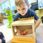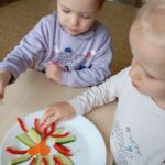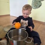 STEAM eksperimentai atnešė dar daugiau atradimų – vaikai bandė, kuri daržovė nurieda toliau, kūrė smagias riedėjimo trasas iš įvairių daiktų. Sužinojo, kas vandenyje skęsta, o kas plaukia, ugdė gebėjimą stebėti ir daryti išvadas.