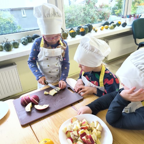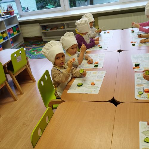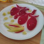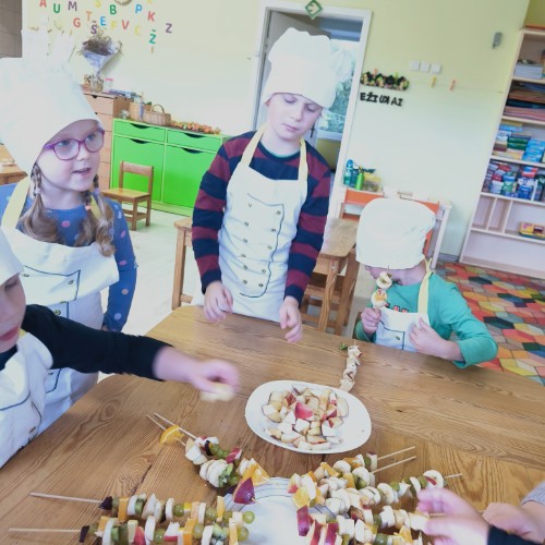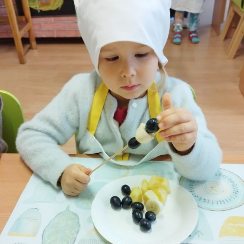 Mažieji virėjai gamino salotas, vėrinukus ir sveikus užkandžius, kūrė savo „vitaminų lėkštes“. Kūryboje vaisiai ir daržovės virto netradicinėmis dailės priemonėmis, antspauduodami vaikai kūrė įvairius raštus ir ornamentus.