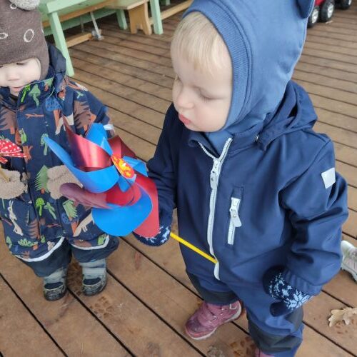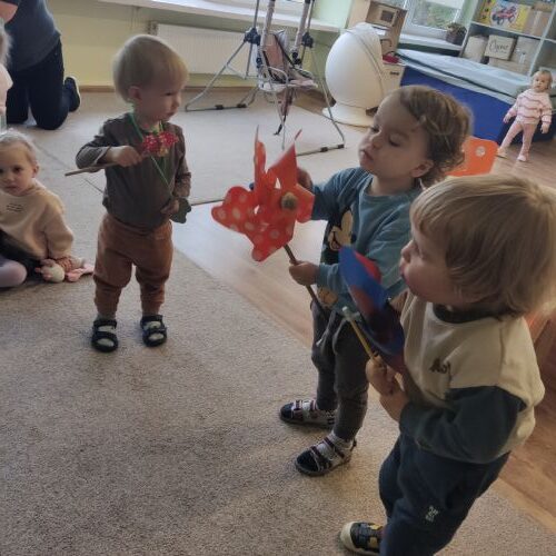 Antra vėjuota savaitė mūsų darželyje. Ir toliau vaikai tyrinėjo vėją – pūtė, vėdino, traukė ir kitaip bandė sukelti judesį. Net lapų lenktynes surengė. Vėjas atpūtė ir puikią edukaciją, apie Muiliuko kelionę. Dabar jau tikrai lauke pažaidę vėją vaikai nepamirš grįžę į grupę nusiplauti rankų!