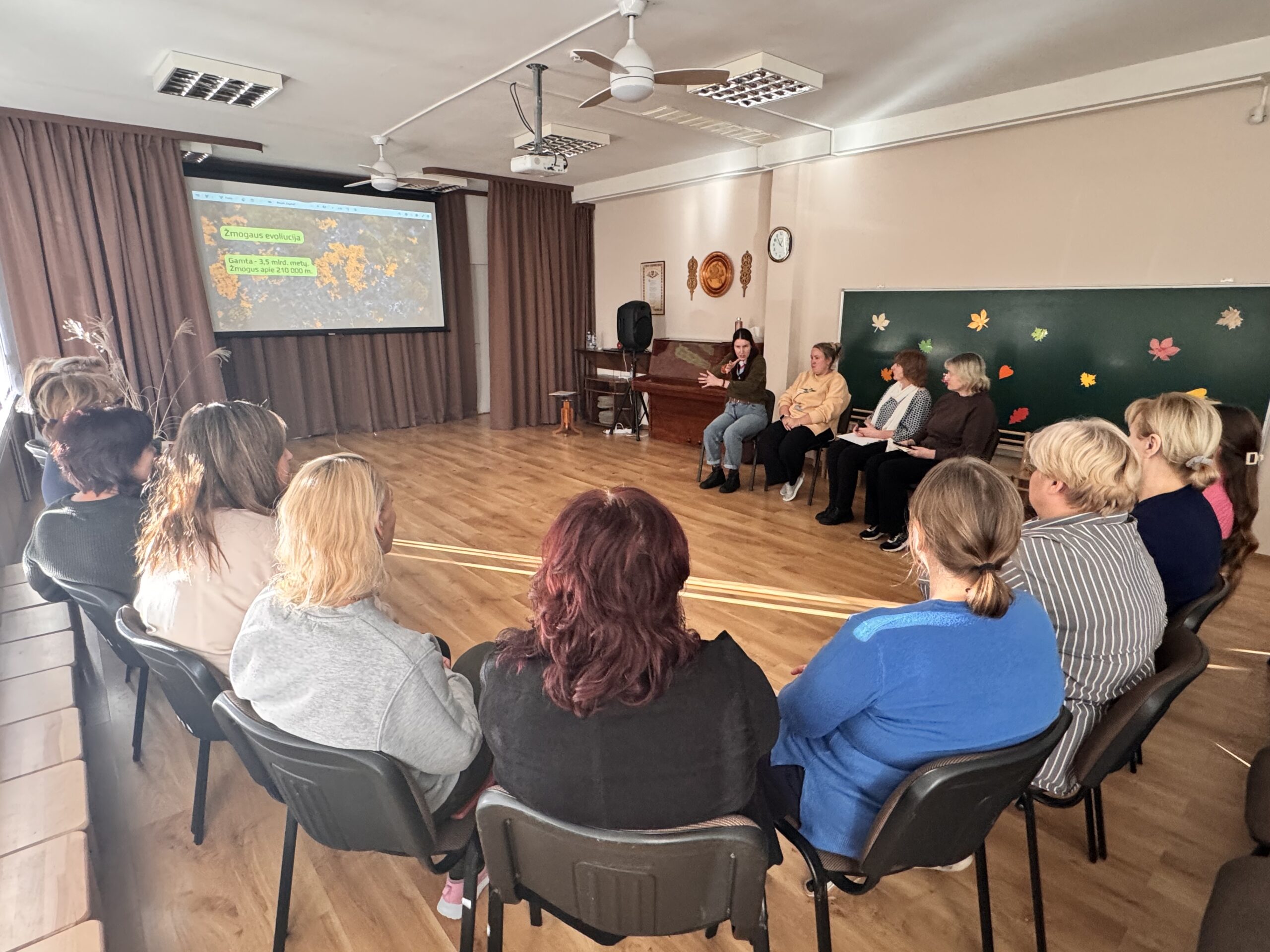 Įkvepiantis pokytis prasideda nuo ryšio su gamta. Siekdami ugdyti darnią lyderystę, į svečius pasikvietėme Sandrą Galdikaitę – „9 zuikiai“ patyriminių praktikų kūrėją. Ji mūsų pedagogams vedė užsiėmimus apie darnumą, gamtos intelektą ir „minkštųjų“ įgūdžių praktikavimą gamtoje.