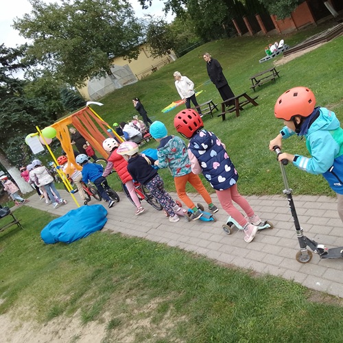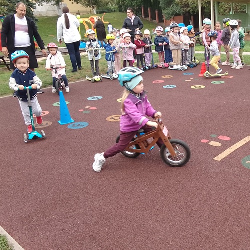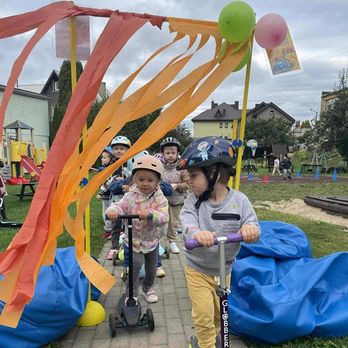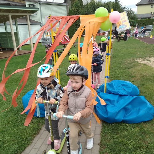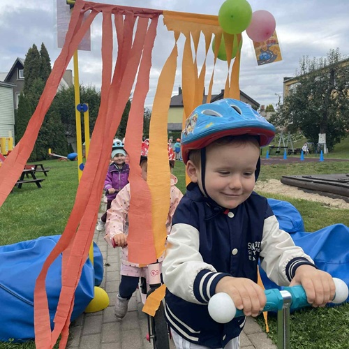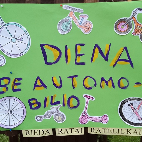 Darželyje minint Tarptautinę dieną be automobilio, rugsėjo 22-ąją, vaikai į darželį atriedėjo įvairiomis dviratėmis priemonėmis, atsinešė traukiamus ratuotus žaislus, mašinėles. Visa bendruomenė, nuo mažiausiųjų iki priešmokyklinukų, susirinko darželio kieme. Laukė linksmas pasivažinėjimas. „Nusiplovę“ savo dviratukus ir paspirtukus plovykloje „Greitkelio liepsnelės“, visi išsirikiavo prie starto linijos. Lenktynės vyko be avarijų, nes visi buvo draugiški kitiems eismo dalyviams, visi dėvėjo šalmus. Po pasivažinėjimo vaikų laukė įdomios veiklos su kamuoliukais ir važiavimu su kliūtimis, kurias paruošė meninio ugdymo mokytojas Edgaras.
