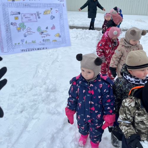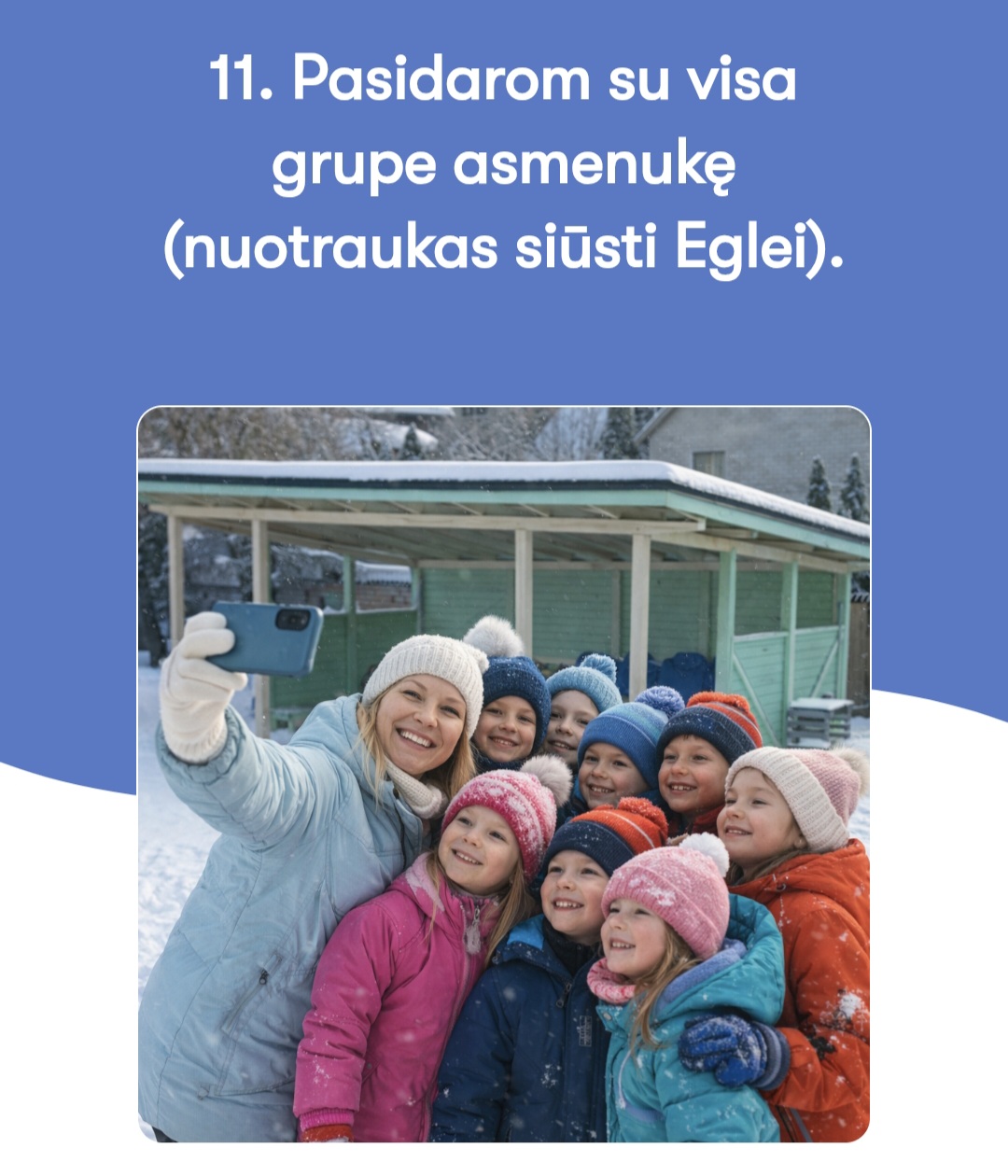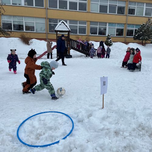 Oi, kokia diena šiandien buvo! Mūsų darželis vienai dienai tapo tikru žiemos nuotykių parku, kur vietoj paslaptingų žemėlapių – QR kodai, o vietoj lobių – juokas, judesys ir raudoni skruostukai! Vos tik prasidėjo kelionė, pasipylė šypsenos „Asmenukės akimirkoje“ – tiek pozų ir grimasų, kad net telefonai turbūt nustebo! Futbolo iššūkyje kamuolys riedėjo taip greitai, kad žiema nespėjo jo pavyti. Ant sniego „išdygo“ patys gražiausi angelai, o kliūčių ruože mažieji įrodė, kad energijos turi daugiau nei visa sniego pūga kartu sudėjus!