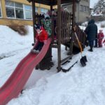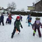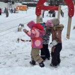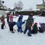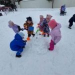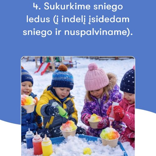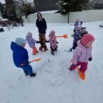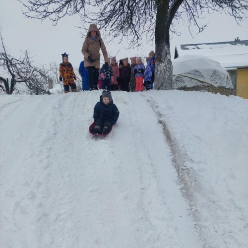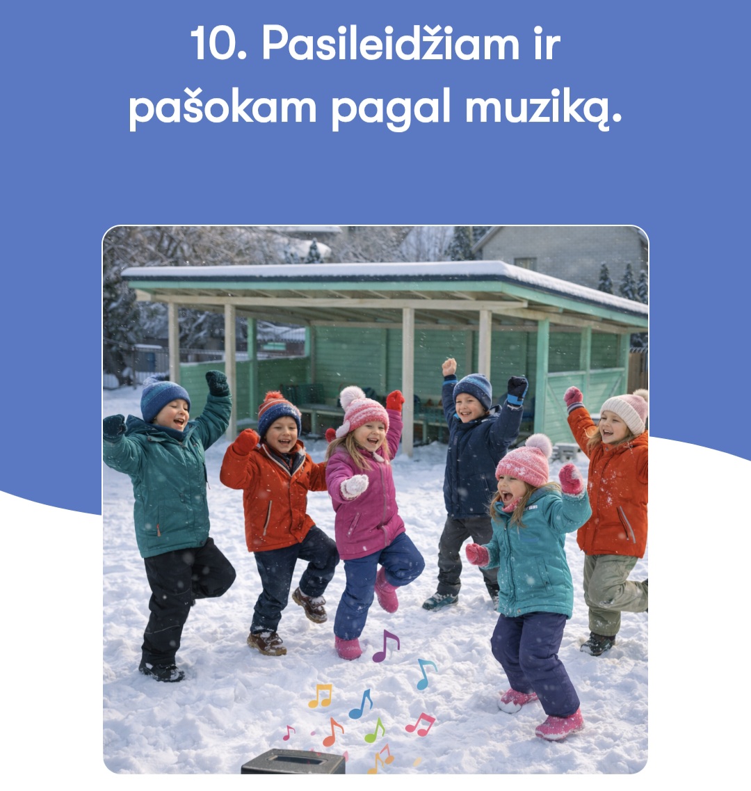 Kai užgrojo muzika – sustoti buvo neįmanoma. Šokome taip smagiai, kad, rodos, net snaigės pradėjo linguoti į taktą! „Sniego ledų“ gamyboje atsiskleidė tikri kūrybos šedevrai – jei būtų buvęs konkursas, laimėtų visi! Kasimo darbuose netrūko nei jėgos, nei ryžto – sniegas skraidė į visas puses!