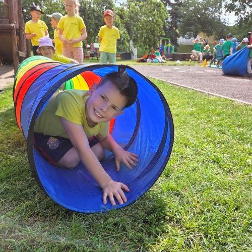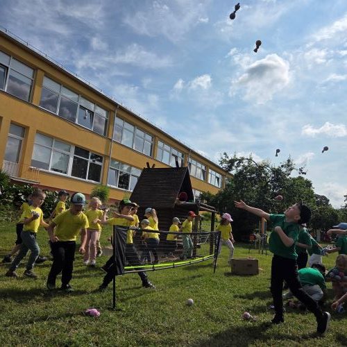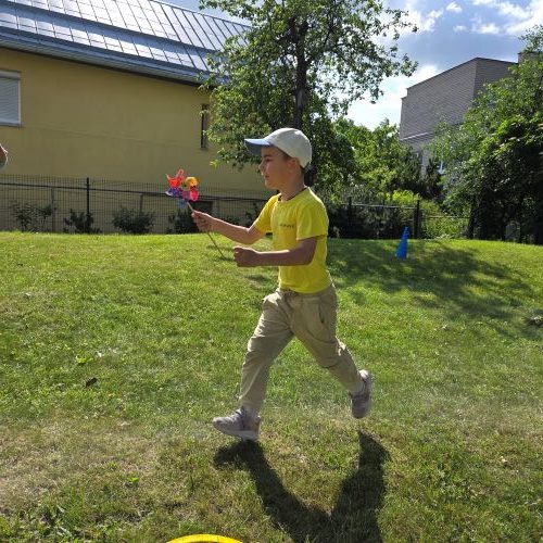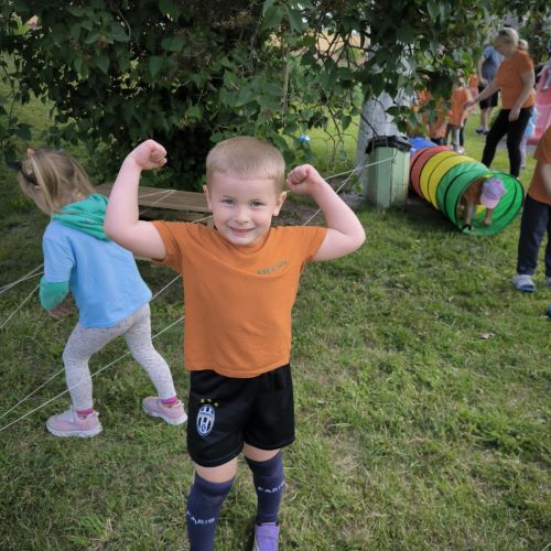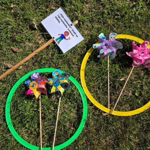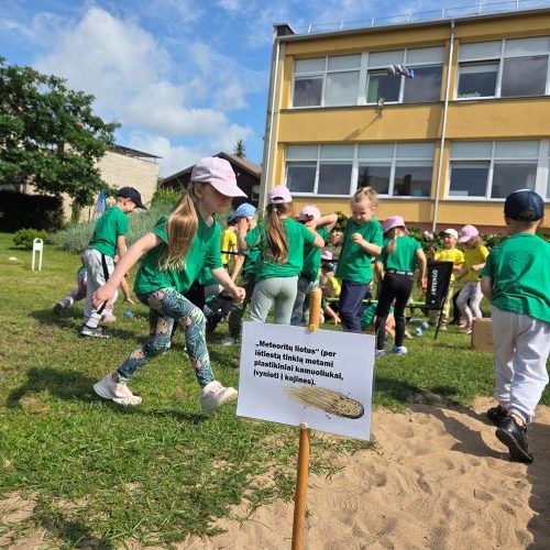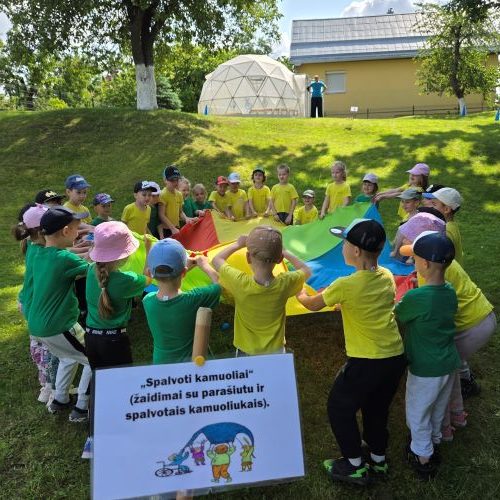 O kur dar vėjo gaudymas, spalvingos mašinėlių lenktynės, virvės traukimo varžybos ir žaidimai su parašiutu! Net „meteoritų lietus“ užklupo – bet visiems buvo labai smagu!